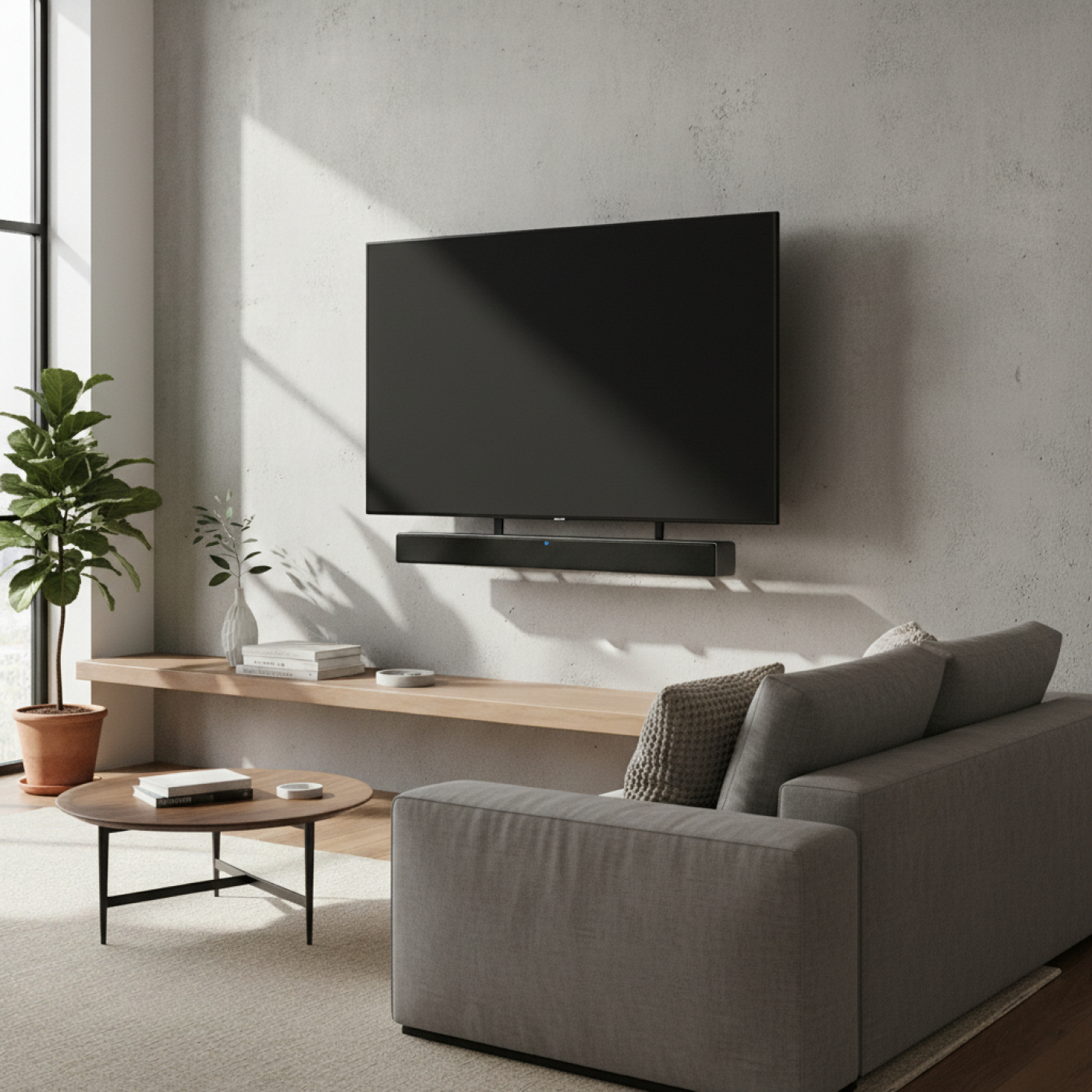 • Strakke look: soundbar onder of boven de tv, zonder losse beugels in zicht