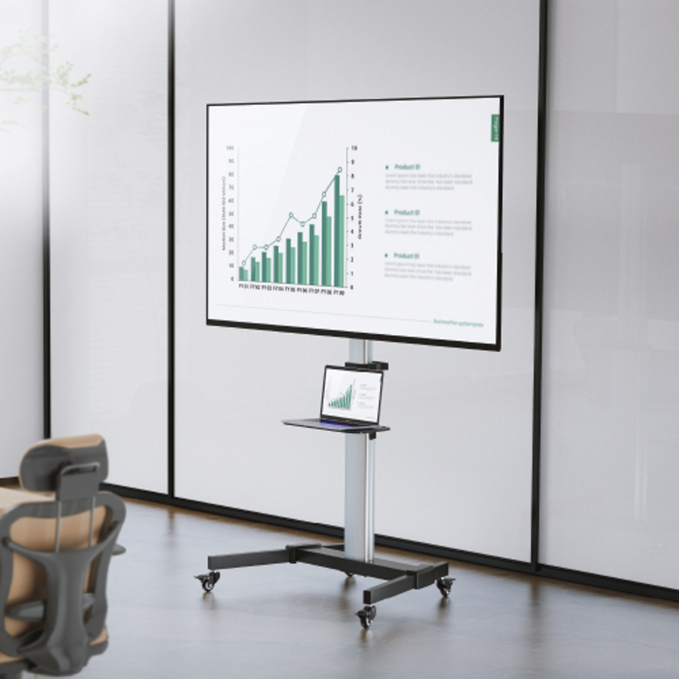 • Lichtgewicht en duurzaam: De aluminium kolom is zowel licht van gewicht als stevig, waardoor deze TV cart langdurig betrouwbaar is.