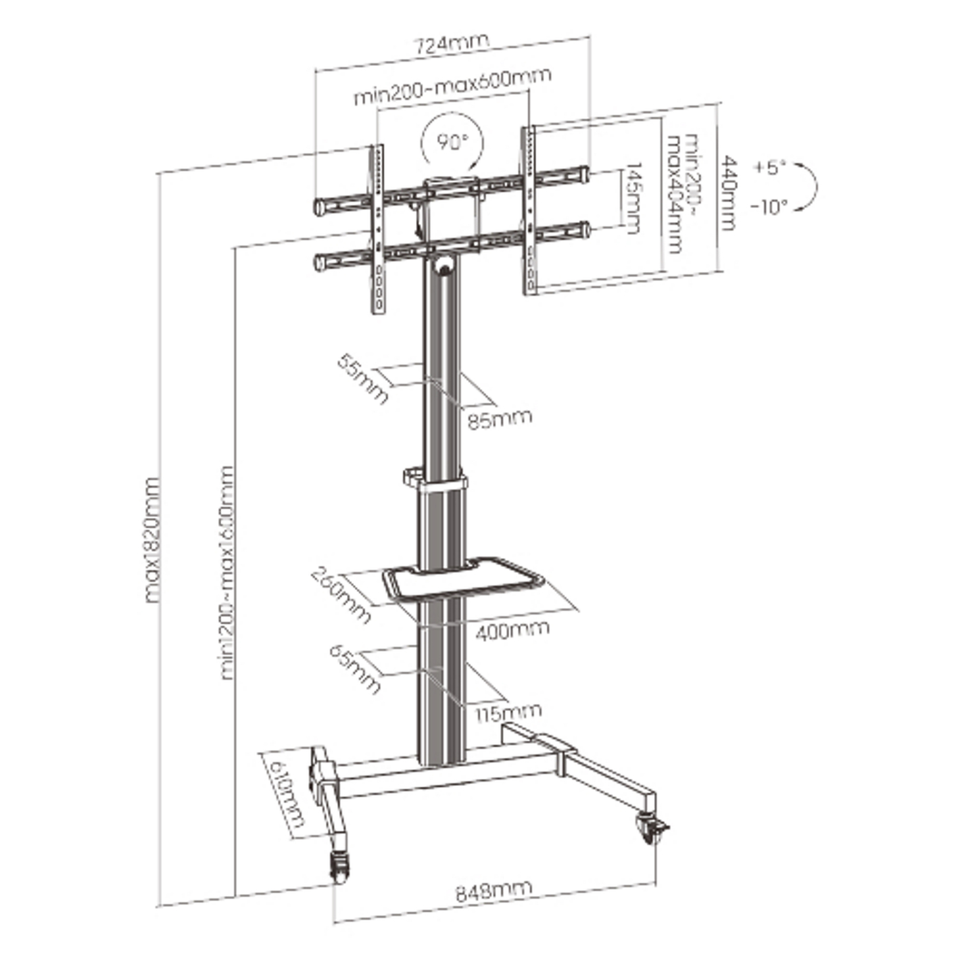 Ontdek deze TV cart – een betaalbare oplossing die geen concessies doet aan kwaliteit. Met zijn lichtgewicht aluminium kolom biedt deze TV cart zowel duurzaamheid als flexibiliteit, zodat je optimaal kunt genieten van je televisie-ervaring. Deze TV cart is geschikt voor tv schermen met formaten van 37″- 86″.