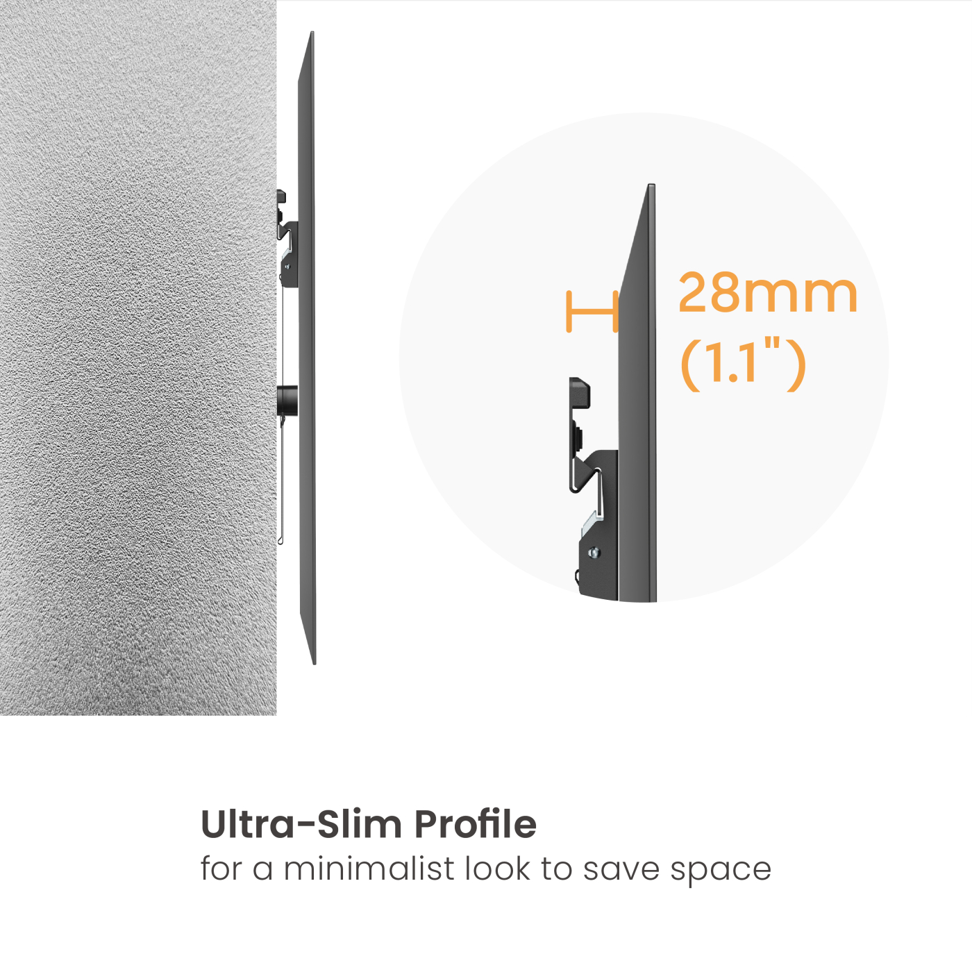 – Ruimtebesparend ontwerp: Ultraslank profiel verkleint de afstand tussen muur en tv en zorgt voor een minimalistische esthetiek.