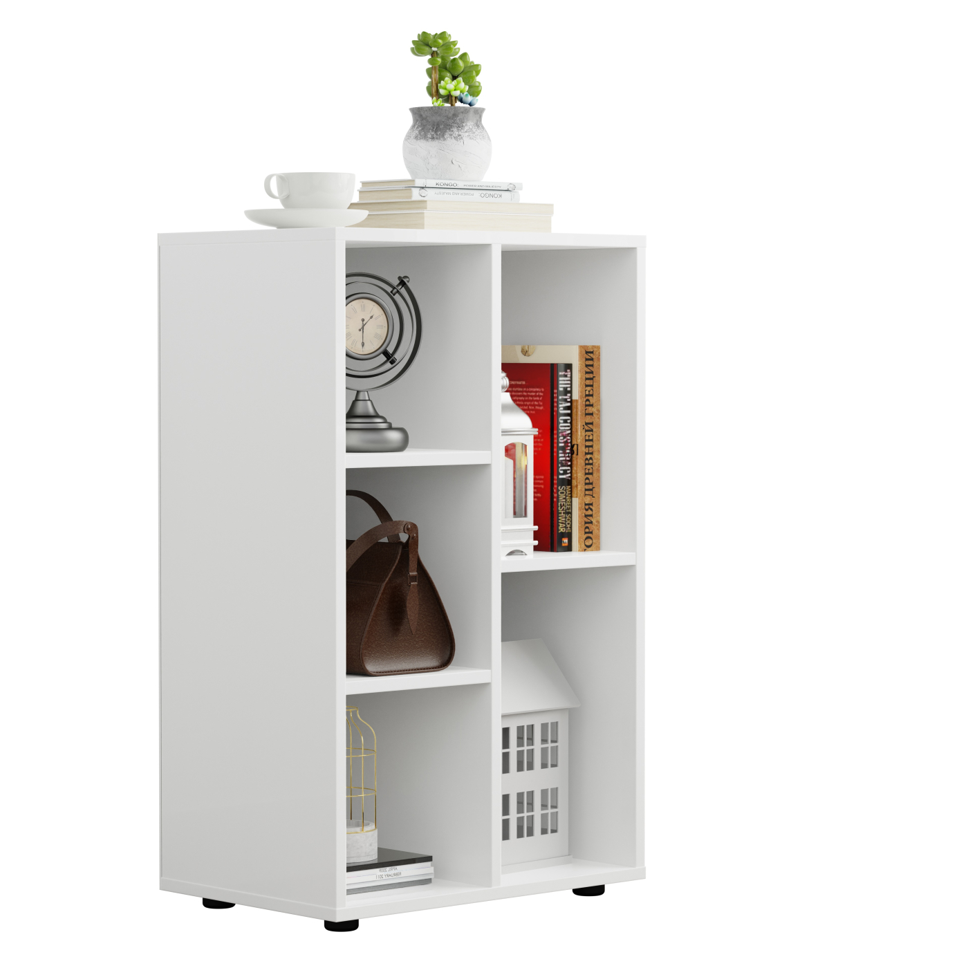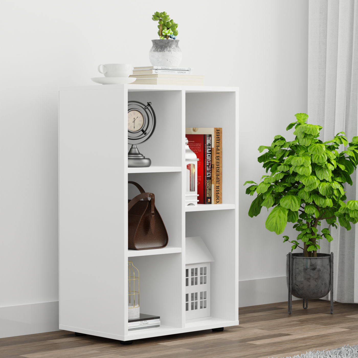 • Vijf ruime vakken: Ideaal voor het opbergen van boeken, decoraties, of andere accessoires.