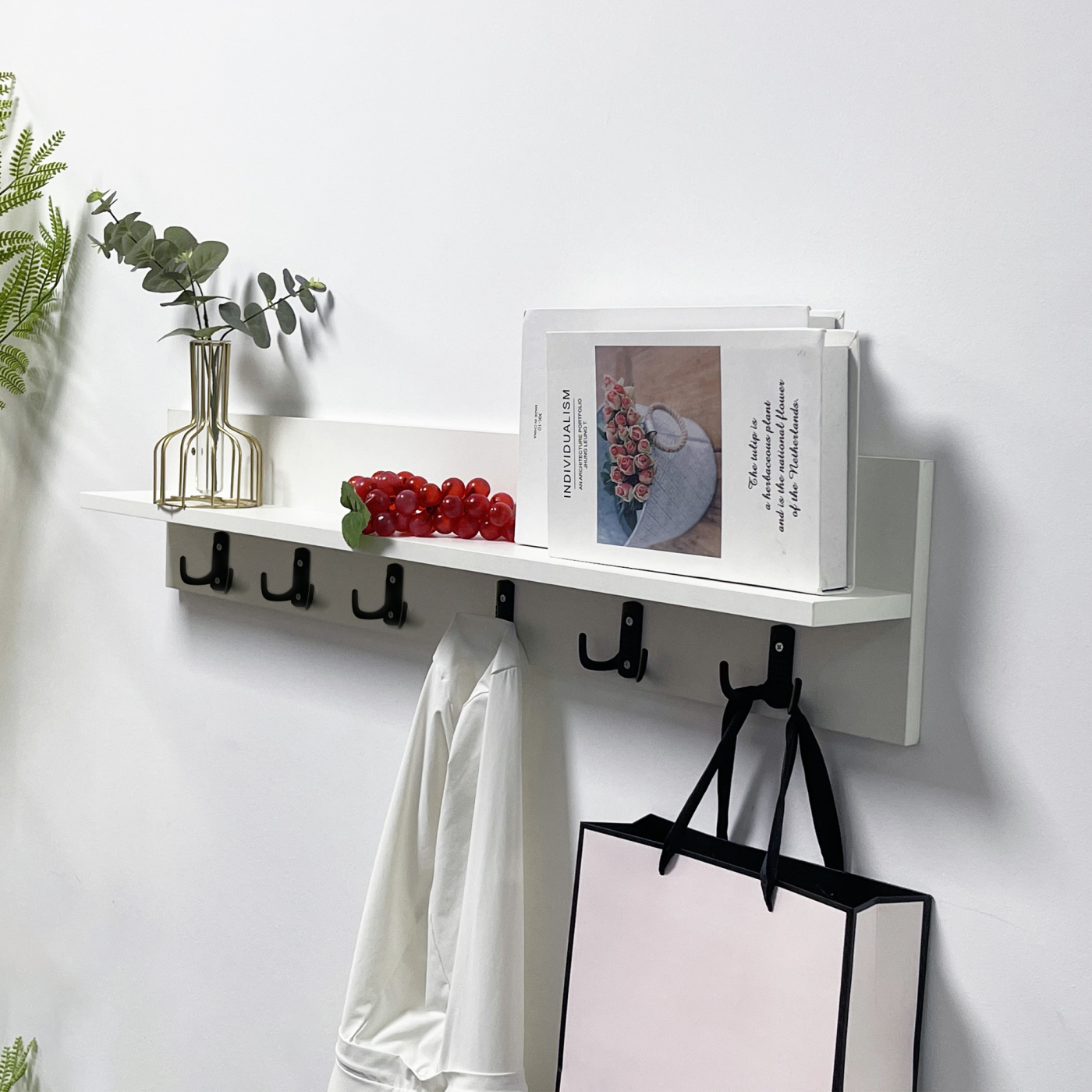 Wandkapstok met opbergplank – wit – stijlvol en functioneel