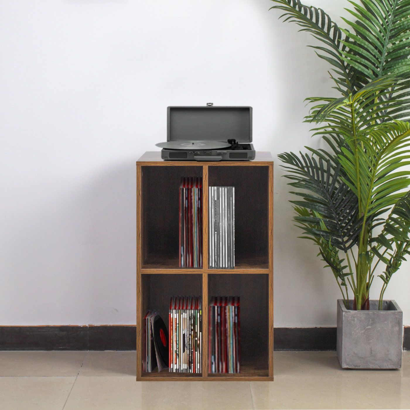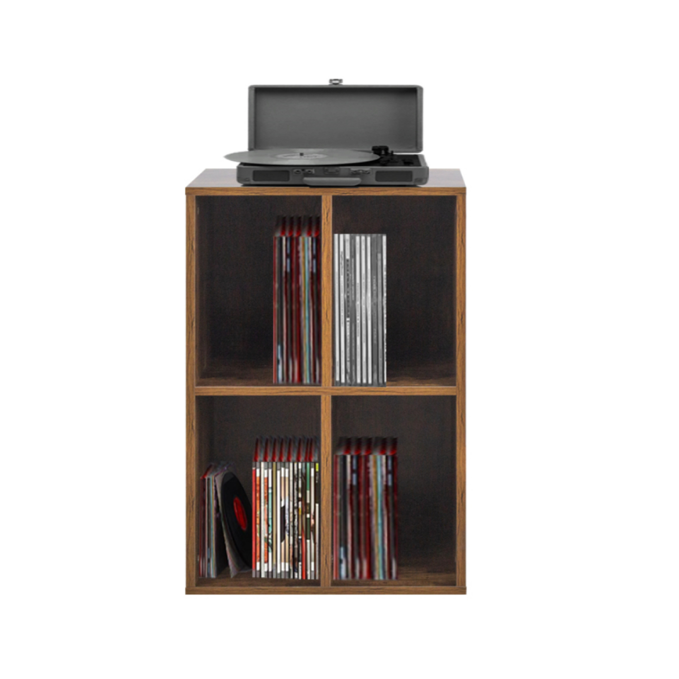 Een stevige en simpele maar praktische bruin walnoot kleurige lp platen kast voor het opbergen en tonen van uw Lp platen vinyl collectie en boeken of tijdschriften. Opbergen tonen en doorbladeren van je LP vinyl platen met de mogelijkheid om je platenspeler boven op de opbergkast te plaatsen. Deze vakkenkast is natuurlijk ook universeel te gebruiken in uw kantoor werkkamer slaapkamer of woonkamer. Dit opbergsysteem kan je gebruiken enkel of in een creatie van meer kasten naass of boven elkaar. Binnen afmetingen per vak 20 cm breed x 35 cm diep x 35 cm hoog.
