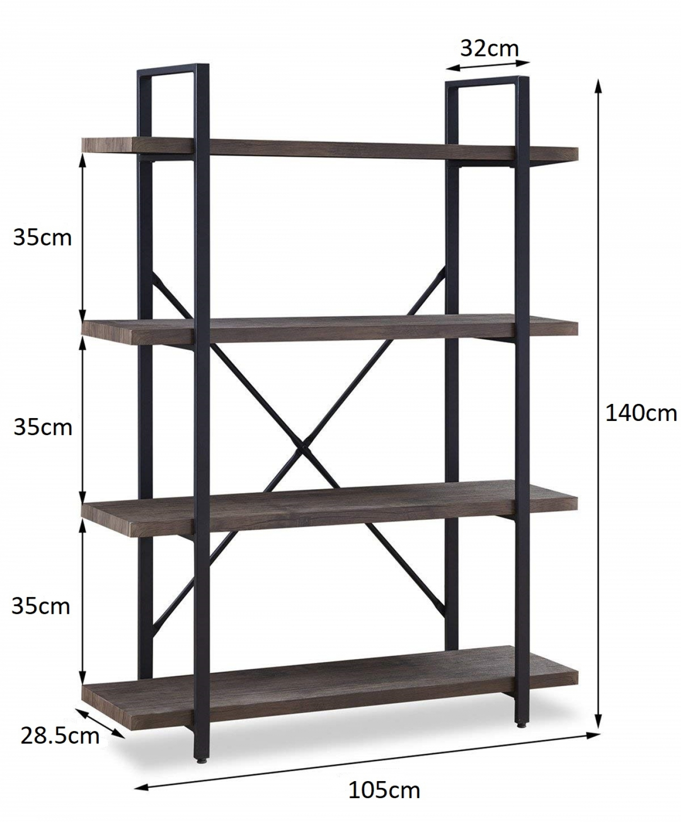 Een mooi ontworpen industriele metalen staande design wandkast geschikt voor elke ruimte in uw woning of kantoor. Het metalen frame met de aan beide kanten uitstekende 3 cm dikke houten legplanken geeft een speels en ruimtelijk karakter aan uw ruimte. Deze metalen industriele wandkast is universeel te gebruiken als onder andere open wandkast, vitrinekast of verzamelingenkast, boekenkast, LP vinyl opbergkast, archiefkast, bakkerskast of schoenenkast. Afmetingen: breed 105 cm x diep 32 cm x hoog 140 cm. Deze wandkast Stoer is ook verkrijgbaar in de kleur wit en in andere formaten. Levering inclusief montage instructie en benodigde onderdelen.