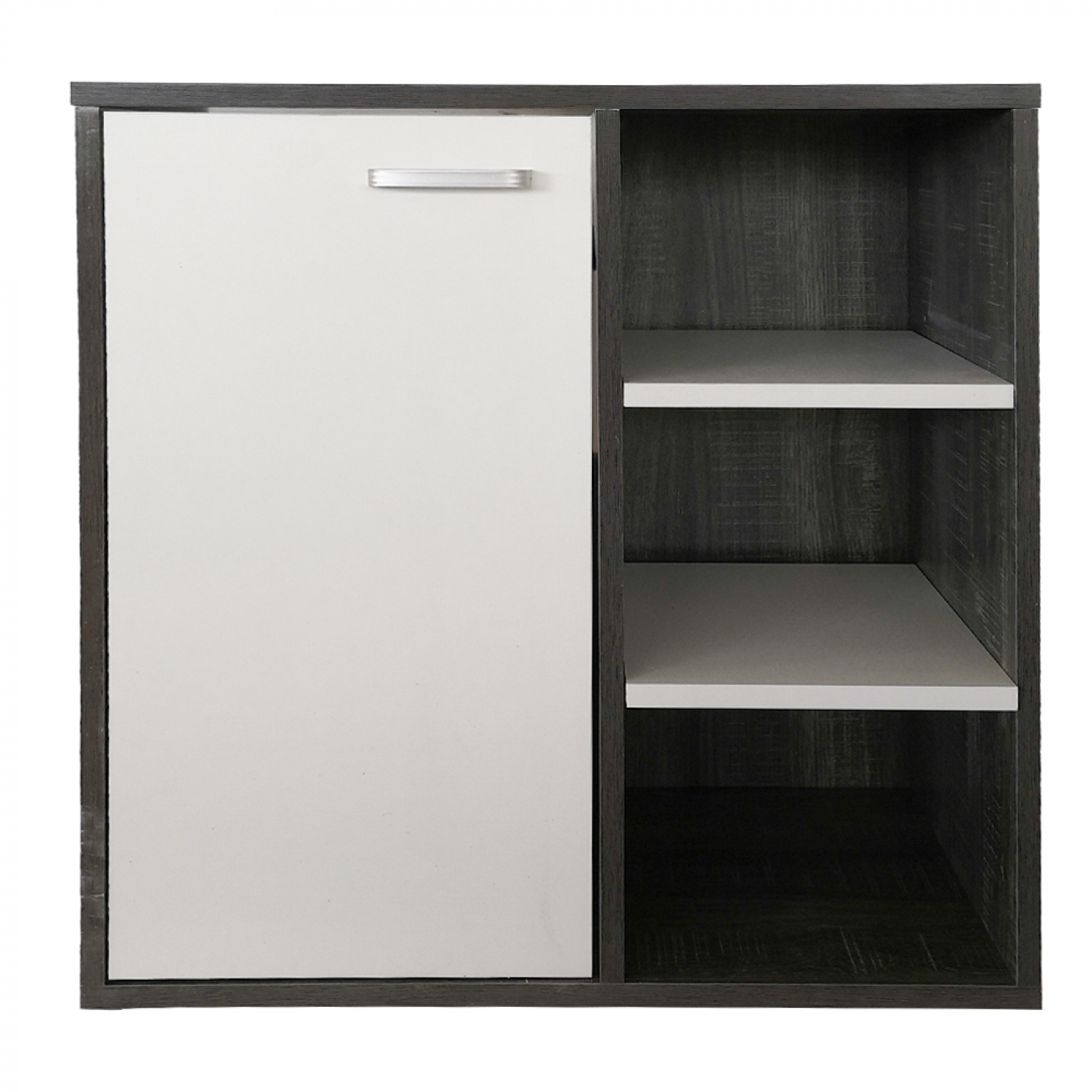 Deze onderkast voor onder de wastafel is ideaal voor elke badkamer. Het meubel is ruimtebesparend en biedt voldoende opbergmogelijkeden zodat uw badkamer ordelijk blijft. Links een openslaande deur met een grote open opbergruimte en rechts 3 afzonderlijke opbergvakken. Let op levering exclusief wasbak, de kraan en spiegel en de hoogte is 60 cm. Indien de wastafel hoger aan de muur is gemonteerd dan kan er een open ruimte tussen de wastafel en de onderbouwkast ontstaan. Kleur: grijs met wit. Afmetingen: hoog 60 cm breed 60 cm, diep 30 cm. Levering is inclusief handleiding en benodigde montagematerialen.